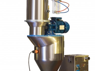 Unidad de dosificación diseñada para moldeo por inyección. Sistema económico para la dosificación y mezcla de 3 materiales: válvula proporcional en cargador para la alimentación de los 2 materiales principales y un equipo BeltColor que adiciona el color o cualquier otro aditivo.
